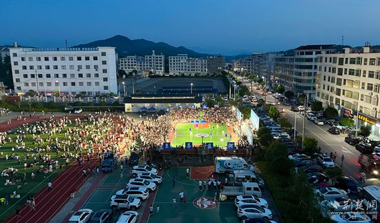 球員揮汗拼搏,群眾吶喊助威。本土的舞動(dòng)青春舞蹈隊(duì)帶來的籃球啦啦操《紅日》,氛圍感拉滿;拆盲盒游戲環(huán)節(jié),茶油、瓜果、雪花粑、天堂寨門票等“接地氣”的特色獎(jiǎng)品吸引現(xiàn)場觀眾踴躍參加;當(dāng)《海闊天空》熟悉的旋律響起時(shí),全場手機(jī)閃光燈隨著節(jié)奏舞動(dòng),齊聲合唱,瞬間將現(xiàn)場的氣氛帶到了高潮,天空中燃起璀璨的煙花,燃爆匡河夏日夜。