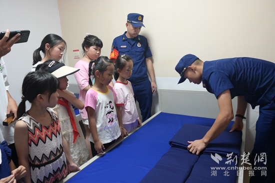 孩子們還走進(jìn)了消防員的宿舍,看到疊得如同豆腐塊般的被子,大家紛紛豎起了大拇指,都被消防員高度的自律性所震撼。消防員為青少年講解了“豆腐塊”被子的疊法,大家學(xué)習(xí)熱情高漲,紛紛模仿、動(dòng)手操作?!敖裉斓膮⒂^讓我感受到了消防叔叔們的勇敢和擔(dān)當(dāng)。我以后也要成為一名光榮的消防員,守護(hù)大家的安全和平安?!币晃粎⒓踊顒?dòng)的小朋友說(shuō)道。