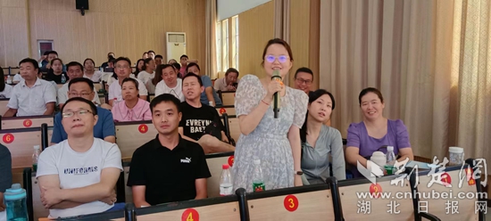 紅安名師李國(guó)新作名師引領(lǐng)感悟交流。他以靈魂拷問(wèn)“何為名師?為何而名?如何成長(zhǎng)”拋磚引玉,列舉身邊名師榜樣,毫無(wú)保留的分享了自己的工作經(jīng)驗(yàn)。