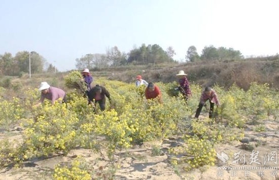 來到紅安縣杏花鄉(xiāng)張河村野菊花基地,只見該村200畝余野菊花長勢喜人。