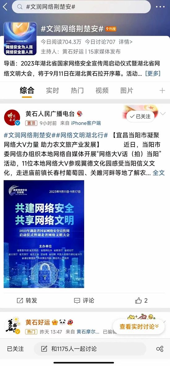 記者梳理發(fā)現(xiàn),9月10日上午,在微博平臺(tái)上,由湖北省正能量網(wǎng)絡(luò)大V“黃石好運(yùn)”發(fā)起上述討論話題。平臺(tái)數(shù)據(jù)顯示,當(dāng)天相關(guān)話題閱讀量超過4000萬人次,全省已有15家媒體平臺(tái),包括荊楚網(wǎng)、湖北發(fā)布、長(zhǎng)江日?qǐng)?bào)、武漢發(fā)布、宜昌發(fā)布、黃石廣播電視臺(tái)等官方平臺(tái)賬號(hào)參與話題接力、轉(zhuǎn)發(fā)。不少網(wǎng)友紛紛參與評(píng)論互動(dòng)。
