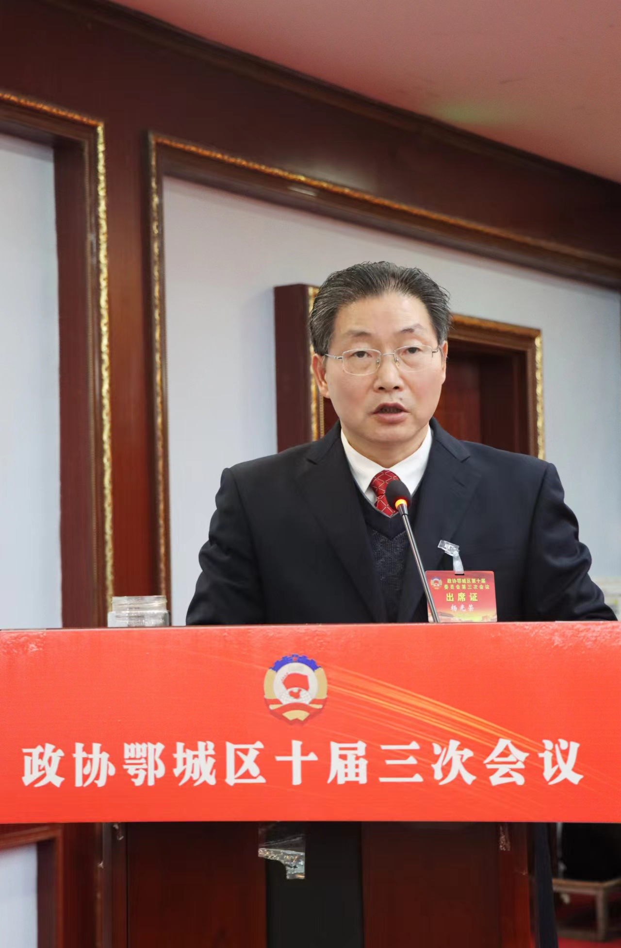 鄂城區(qū)政協(xié)主席楊光榮代表政協(xié)鄂城區(qū)第十屆委員會常務(wù)委員會作工作報告。胡小軍 攝