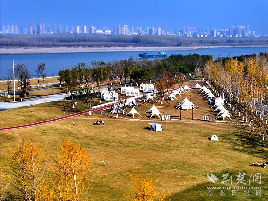 冬日暖陽,樊口江灘邊,散布著數(shù)十個露營帳篷。草地上,有的游客在燒烤,有的游客坐在小凳子曬太陽閑聊,有的游客在逗弄著寵物……幾個小朋友沿著江堤放風箏,遠處的長江,貨船穿梭不息。