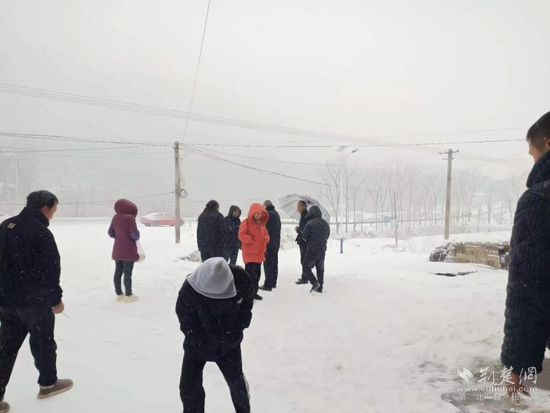 2月22日一大早,一群群紅色身影出現(xiàn)在官塘驛鎮(zhèn)的各個(gè)角落,成為雪地里最亮麗的風(fēng)景。有的在街上揮動(dòng)著鐵鍬、拿著掃把,分工協(xié)作,為村民鏟出出行道路;有的在大棚里,查看農(nóng)戶受災(zāi)情況,指導(dǎo)做好防范措施;還有的在村民家里,關(guān)心其生活情況......