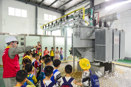 電力工作人員帶領小朋友們實地參觀展區(qū),學習電力知識。通訊員 供圖