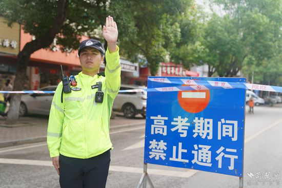 在開考前和考試結(jié)束后的高峰期,交警大隊在各考點大門及周邊路段增加執(zhí)勤警力,指揮疏導交通,踐行愛心護考,一路護航考生“乘風破浪”順利參加考試。