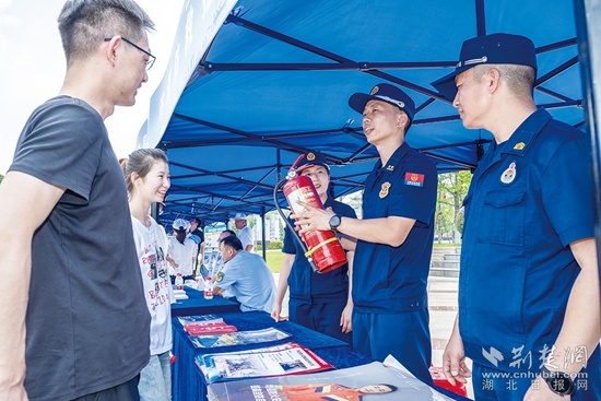 此次安全宣傳咨詢?nèi)栈顒邮墙衲臧踩a(chǎn)月系列活動中的重要一環(huán)。當天,黃石市消防救援支隊以次為契機,“擺攤設(shè)點”開展消防宣傳教育活動,現(xiàn)場200余名觀眾接受了一次接地氣“冒熱氣”的安全知識教育。