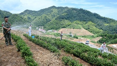 “近段時間高溫干旱,姜書記一直帶領我們到茶園抗旱保苗,他在部隊當班長那種雷厲風行的作風一點沒變?!卑派酱濉皟晌睅酌嘧映蓡T由衷欽佩道。