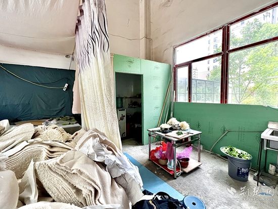 不僅如此,在大約50平方米的空間里,混亂擺放著十幾臺服裝加工機器,加工設(shè)備旁還放置著燃氣灶、廚具等一應(yīng)俱全的做飯工具,且未進行有效防火分隔。用來“保命”的室內(nèi)消防栓,也被用作置物臺放置各種雜物。
