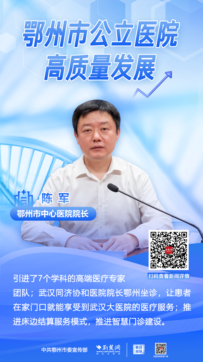 荊楚網(wǎng)(湖北日?qǐng)?bào)網(wǎng))訊(記者 王焱堯 姜夢(mèng)瑤)8月8日,鄂州市舉辦公立醫(yī)院高質(zhì)量發(fā)展新聞發(fā)布會(huì),通報(bào)近年來(lái)該市在“推進(jìn)衛(wèi)生健康事業(yè)高質(zhì)量發(fā)展”中,公立醫(yī)院發(fā)展取得的系列成績(jī)。