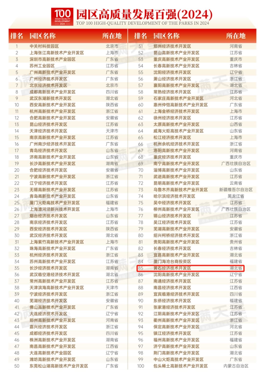 荊楚網(wǎng)(湖北日報網(wǎng))訊(記者呂鑒蕾 通訊員董浩)8月14日,賽迪顧問發(fā)布《2024年中國園區(qū)經(jīng)濟高質(zhì)量發(fā)展研究報告》。黃石經(jīng)濟技術(shù)開發(fā)區(qū)在賽迪百強園區(qū)中位列85位,較上一年上升7位。
