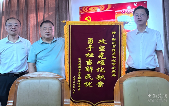 荊楚網(wǎng)(湖北日報網(wǎng))訊(記者王焱堯)攻堅克難化積案,勇于擔(dān)當解民憂。8月30日上午,鄂州市東升花園小區(qū)15號樓業(yè)主代表周克東、胡德江給鄂州市住更局送去一面錦旗。