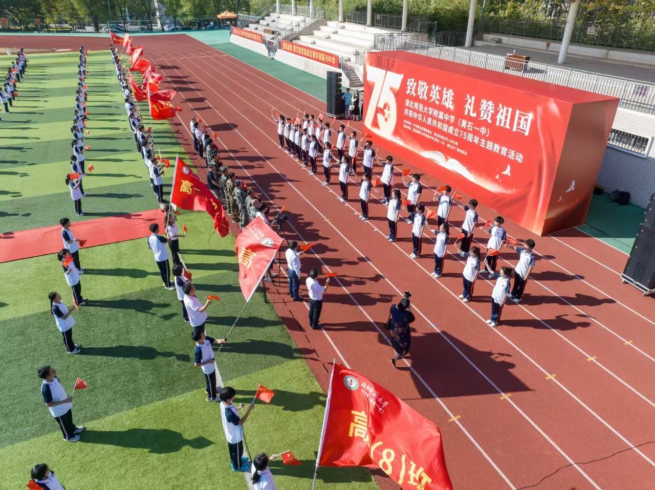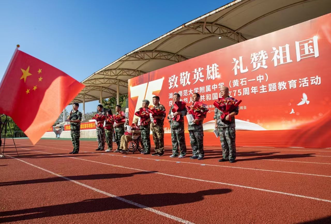 9月29日上午,國慶節(jié)臨近,“致敬英雄 禮贊祖國”——湖北師范大學(xué)附屬中學(xué)(黃石一中)慶祝中華人民共和國成立75周年活動舉行。活動通過走一次紅地毯、唱一首主題歌、獻一束手捧花、送一本報道集等形式,致敬為共和國無私奉獻的英雄們。