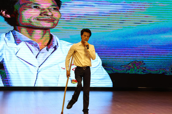 杜詠梅的《牽手》,講述了一位教師與一名自閉癥兒童的故事。“吾國萬疆以仁愛,千年不滅的信仰......”現(xiàn)場(chǎng)觀眾應(yīng)節(jié)合拍,氣氛達(dá)到了高潮。