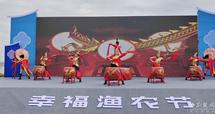 在漁農(nóng)文藝觀賞區(qū),開幕儀式上頒發(fā)了陶店鄉(xiāng)農(nóng)業(yè)發(fā)展顧問(wèn)和電商發(fā)展顧問(wèn)的聘書,并舉行了湖北淼燁生態(tài)農(nóng)業(yè)有限公司巴河魚丸項(xiàng)目的簽約儀式。舞臺(tái)上,身著統(tǒng)一服裝的表演者們揮舞著鼓槌,敲打著鑼鼓,喜慶的氛圍讓現(xiàn)場(chǎng)觀眾心潮澎湃,掌聲雷動(dòng)。
