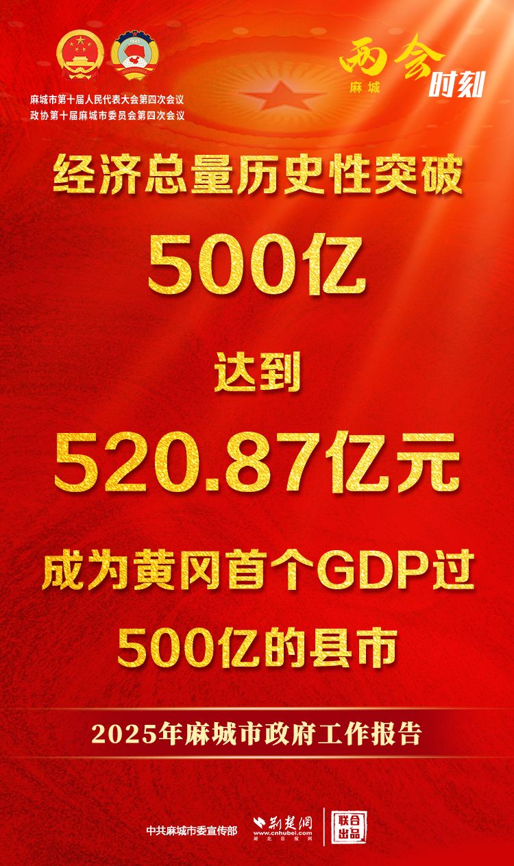 2024年,麻城市經濟總量歷史性突破500億,達到520.87億元,增長6.7%,總量和增速均居黃岡首位,成為黃岡首個GDP過500億的縣市。