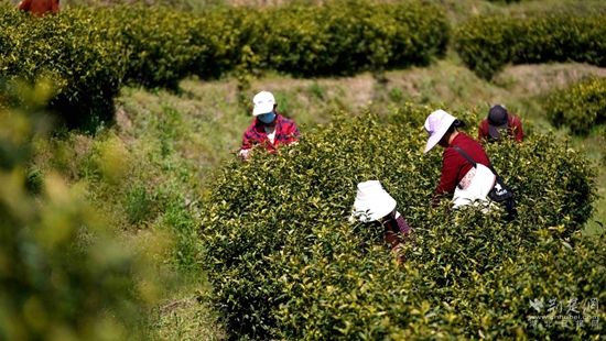 荊楚網(wǎng)(湖北日報網(wǎng))訊(通訊員 陳祥 陳鈺)一芽一葉一抹香,一人一簍采茶忙。4月9日,湖北省蘄春縣大同鎮(zhèn)操山村黃金茶種植基地里,茶農(nóng)們正在搶摘清明節(jié)后的黃金茶,為之后的大規(guī)模炒制提供新鮮原料。