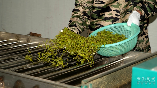 “我們現(xiàn)在是茶葉豐收期,所以我們生產(chǎn)車間都是24小時運轉(zhuǎn),工人都是三班倒,確保每天能產(chǎn)干茶600多斤?!?蘄春蟹子地茶業(yè)有限公司總經(jīng)理吳風長高興道。