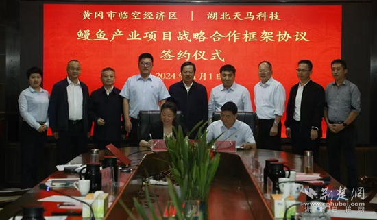 2024年11月1日,產(chǎn)業(yè)鏈領(lǐng)導(dǎo)工作小組趕赴福建與天馬科技集團(tuán)洽談合作,并順利簽訂戰(zhàn)略合作協(xié)議。根據(jù)協(xié)議,天馬科技集團(tuán)將在未來三至五年內(nèi)在黃岡繼續(xù)擴(kuò)大養(yǎng)殖規(guī)模,在現(xiàn)有基礎(chǔ)上擴(kuò)大一倍,屆時(shí)在黃岡總投資將達(dá)到20億元,養(yǎng)殖面積超過兩千畝,年產(chǎn)鰻魚兩萬噸。同時(shí),新建一家烤鰻加工廠,并積極對接花湖機(jī)場,讓活鰻直接上飛機(jī)出口。