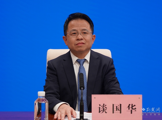 黃石市商務(wù)局黨組書記、局長談國華答記者問。金康 攝