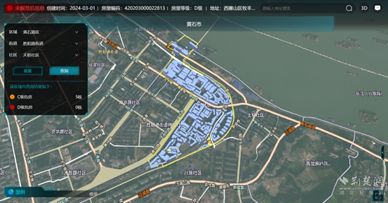 “房屋安全監(jiān)管平臺(tái)對(duì)接了數(shù)公基平臺(tái)后,可精確定位到地圖具體樓棟,并顯示房屋基本信息,統(tǒng)計(jì)和管理更便利?!秉S石市住房和城市更新局相關(guān)負(fù)責(zé)人說。