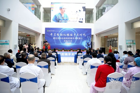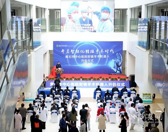 黃石市中心醫(yī)院院長(zhǎng)袁明在開機(jī)儀式上致辭,他表示,黃石市首臺(tái)腹腔鏡機(jī)器人在黃金山院區(qū)投入使用, 將極大地推動(dòng)黃石市中心醫(yī)院外科技術(shù)的發(fā)展。黃石市中心醫(yī)院將以此技術(shù)開展為契機(jī),進(jìn)一步提高醫(yī)療質(zhì)量,為黃石市衛(wèi)生健康事業(yè)高質(zhì)量發(fā)展作出新的更大貢獻(xiàn)。