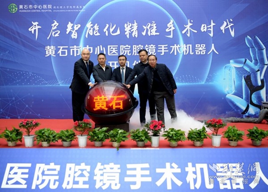 上午,黃石市中心醫(yī)院腔鏡手術(shù)機(jī)器人開機(jī)儀式在黃金山院區(qū)舉行,黃石市衛(wèi)生健康委主任嚴(yán)定方,中華醫(yī)學(xué)會(huì)泌尿外科分會(huì)常委、武漢市醫(yī)學(xué)會(huì)機(jī)器人與腔鏡外科分會(huì)主委、武漢同濟(jì)醫(yī)院泌尿外科主任王少剛教授,黃石市中心醫(yī)院院長(zhǎng)袁明,黃石市中心醫(yī)院外科主任夏國(guó)兵等與會(huì)嘉賓和專家共同按下“手術(shù)機(jī)器人技術(shù)開啟智能化精準(zhǔn)手術(shù)時(shí)代”的啟動(dòng)球,開啟了黃石地區(qū)微創(chuàng)手術(shù)邁入機(jī)器人的新時(shí)代。開機(jī)儀式上,黃石市中心醫(yī)院黃金山院區(qū)還被授牌為“手術(shù)機(jī)器人培訓(xùn)基地”。