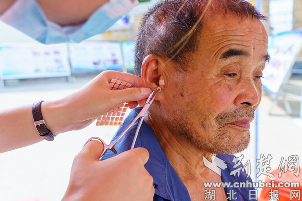 46歲的黃炳程走路時,常常用手撐著腰。今年3月,他突發(fā)腰痛?,F(xiàn)場,宜城中醫(yī)醫(yī)院針灸科主治醫(yī)師林蘭茹在其手部扎完數(shù)枚針后,他大呼止痛效果很明顯。