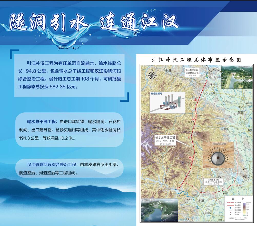 據(jù)介紹,引江補(bǔ)漢工程是南水北調(diào)后續(xù)工程首個(gè)開工項(xiàng)目,是加快構(gòu)建國家水網(wǎng)主骨架和大動(dòng)脈的標(biāo)志性工程。工程靜態(tài)總投資582.35億元,設(shè)計(jì)施工總工期108個(gè)月。