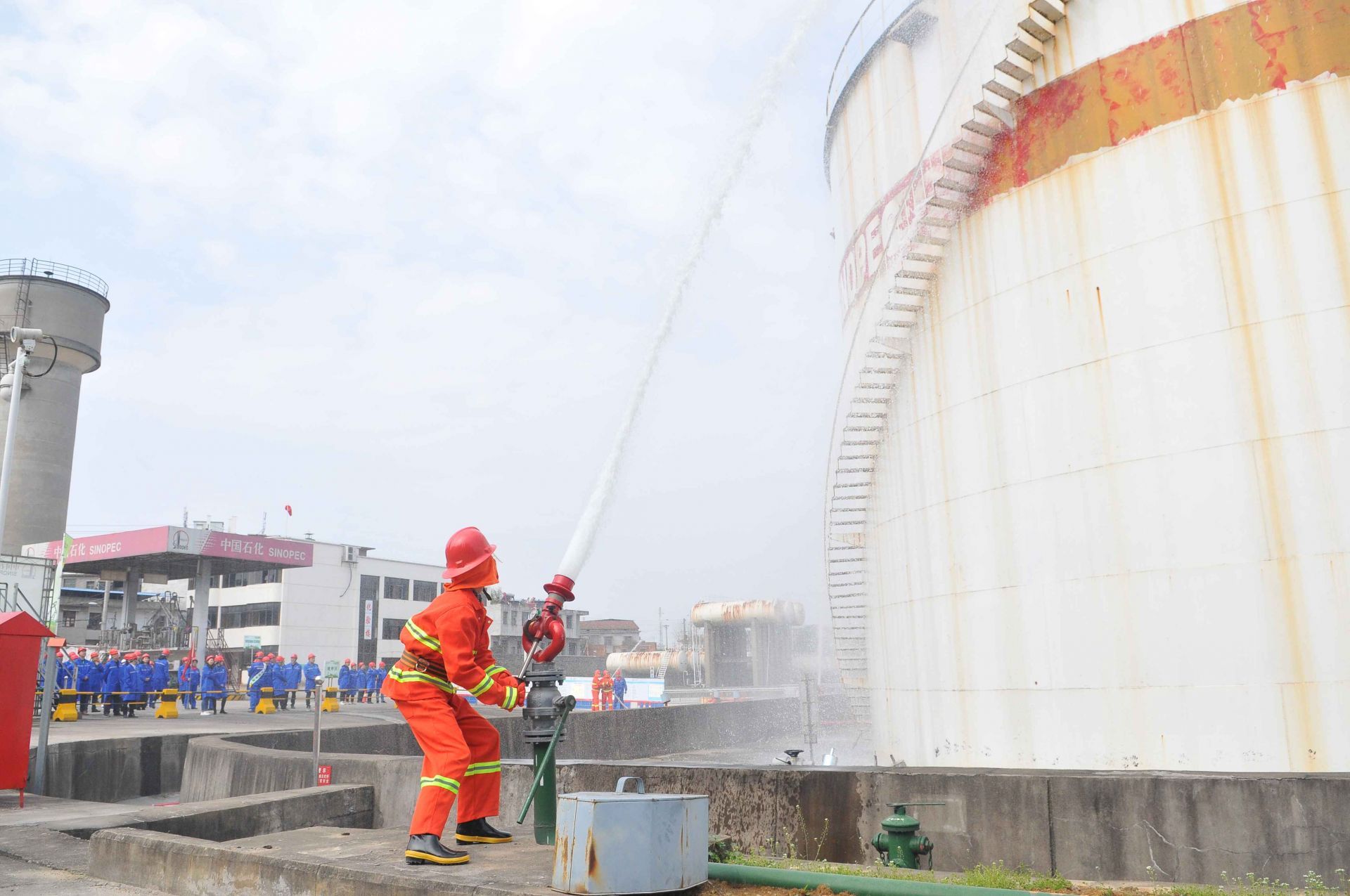 圖:咸寧徐家灣油庫在進(jìn)行消防演練。