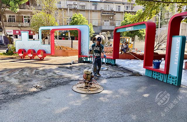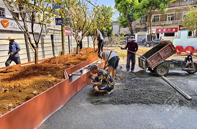8月8日,在赤壁市車站路兒童友好街區(qū)施工現(xiàn)場,來自赤壁建工集團(tuán)的工人們,正在機械的配合下,有條不紊地進(jìn)行著街道改造施工。