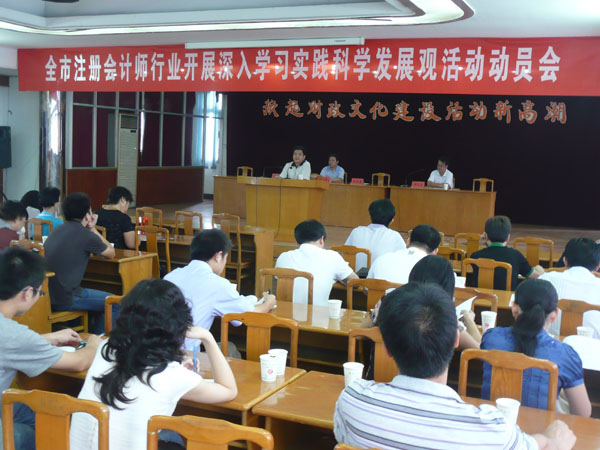 會(huì)上,市注冊(cè)會(huì)計(jì)師行業(yè)黨總支書記方曉同志宣讀了《關(guān)于全市注冊(cè)會(huì)計(jì)師行業(yè)開(kāi)展深入學(xué)習(xí)實(shí)踐科學(xué)發(fā)展觀活動(dòng)的實(shí)施方案》。市內(nèi)7家會(huì)計(jì)師事務(wù)所的黨員及非黨員員工約80多人參加了會(huì)議。