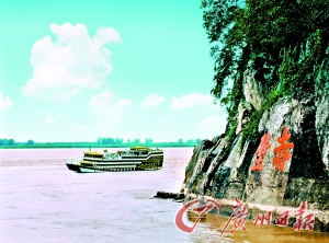 在赤壁縣城西邊的赤壁古戰(zhàn)場,如今依然江水滔滔。當年“赤壁之戰(zhàn)”,經此一役,定下三分天下格局。李白詩曰:“二龍爭戰(zhàn)決雌雄,赤壁樓船掃地空。烈火張?zhí)煺赵坪#荑び诖似撇芄。”夕陽西下,紅色的陽光灑在江面上,怎不讓人想起那烽火連天的三國?