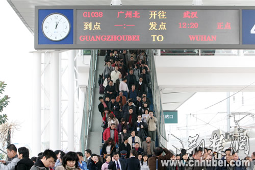 中午11時(shí)46分,列車?繌V州北站,歷時(shí)僅2小時(shí)46分鐘。在站臺(tái)上,記者遇到了一位帶著小孩的江西九江乘客,她興奮告訴記者,“我是慕名專程到武漢坐高鐵快車到廣州探親的,沒想到不到3個(gè)小時(shí)就到了,簡直不敢想。”