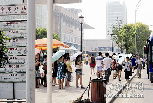 剛從襄陽(yáng)出差回來(lái)的市民陳勇說(shuō),在烈日下拖著行李箱等公交,真是一件要命的事。6月中旬時(shí),陳勇也是從外地出差回來(lái),武漢一會(huì)兒傾盆大雨,轉(zhuǎn)瞬又烈日當(dāng)頭,“聽(tīng)說(shuō)漢口站每天有3萬(wàn)多出站旅客,就這樣被雨淋日曬”。