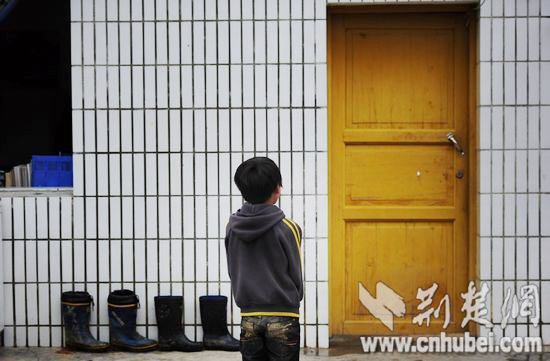 趙曉曉宿舍前,二年級(jí)學(xué)生楊銀松默默站著,房門(mén)緊閉。